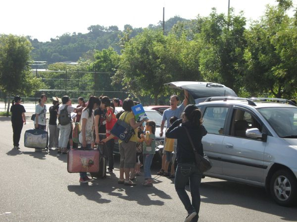 隊輔們在停車場邊熱切等待迎接家長與孩子